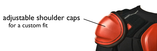 the shoulder caps are adjustable for a custom fit to ensure proper protection. the three plate spine protection allows mobility while offering much more protection compared to other shoulder pads on the market. the chest plate provides great sternum protection. high impact plastic is used to provide the protection needed at the highest level. the shirt has quarter-inch cross linked high density foam padding sewn into it to provide protection to the rest of your upper body. the pads are segmented to move with you. the bicep pads have plastic inserts above the foam to provide extra protection.